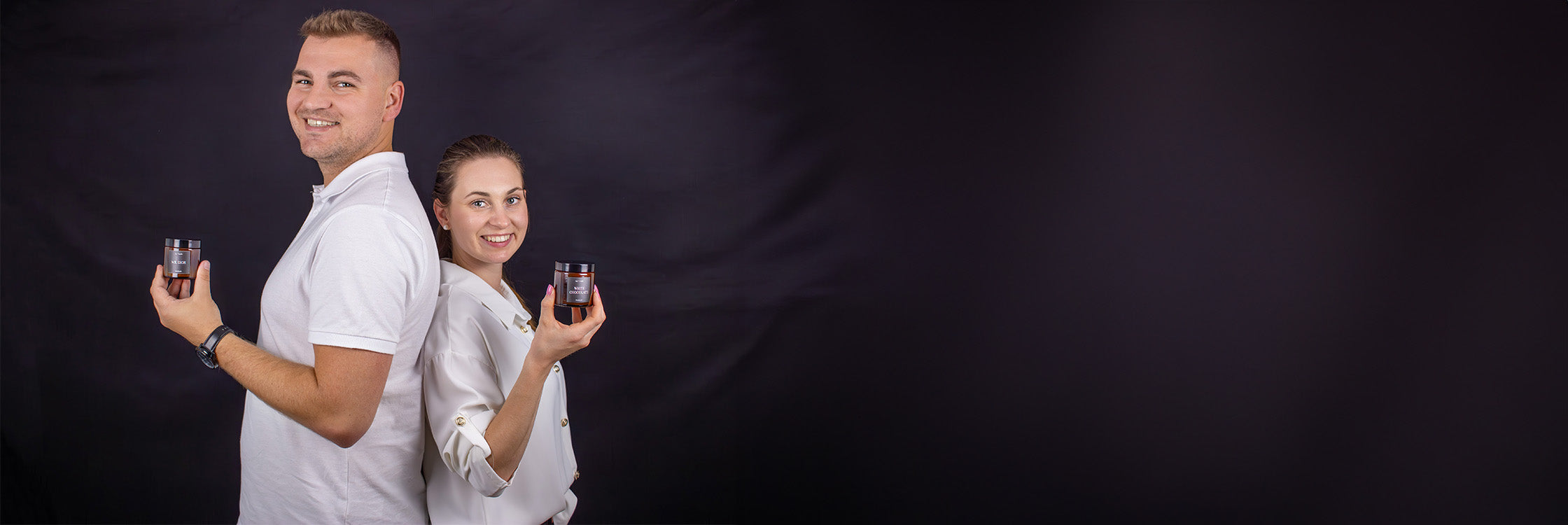 Jesteśmy Daria i Adam – zespołem zarówno w życiu, jak i w biznesie. Od ponad 9 lat wspieramy się we wszystkim co robimy i teraz wspólnie realizujemy naszą pasję do stylowych i naturalnych świec.